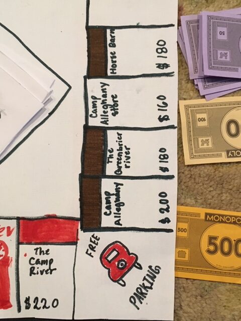 When I heard about what they had done — one camper made a Camp Alleghany for Girls out of LEGOS and made a version of ‘Ghany Monopoly. And the other, a counselor, totally unbeknownst to the first, also made a homemade ‘Ghany Monopoly, or Campopoly!