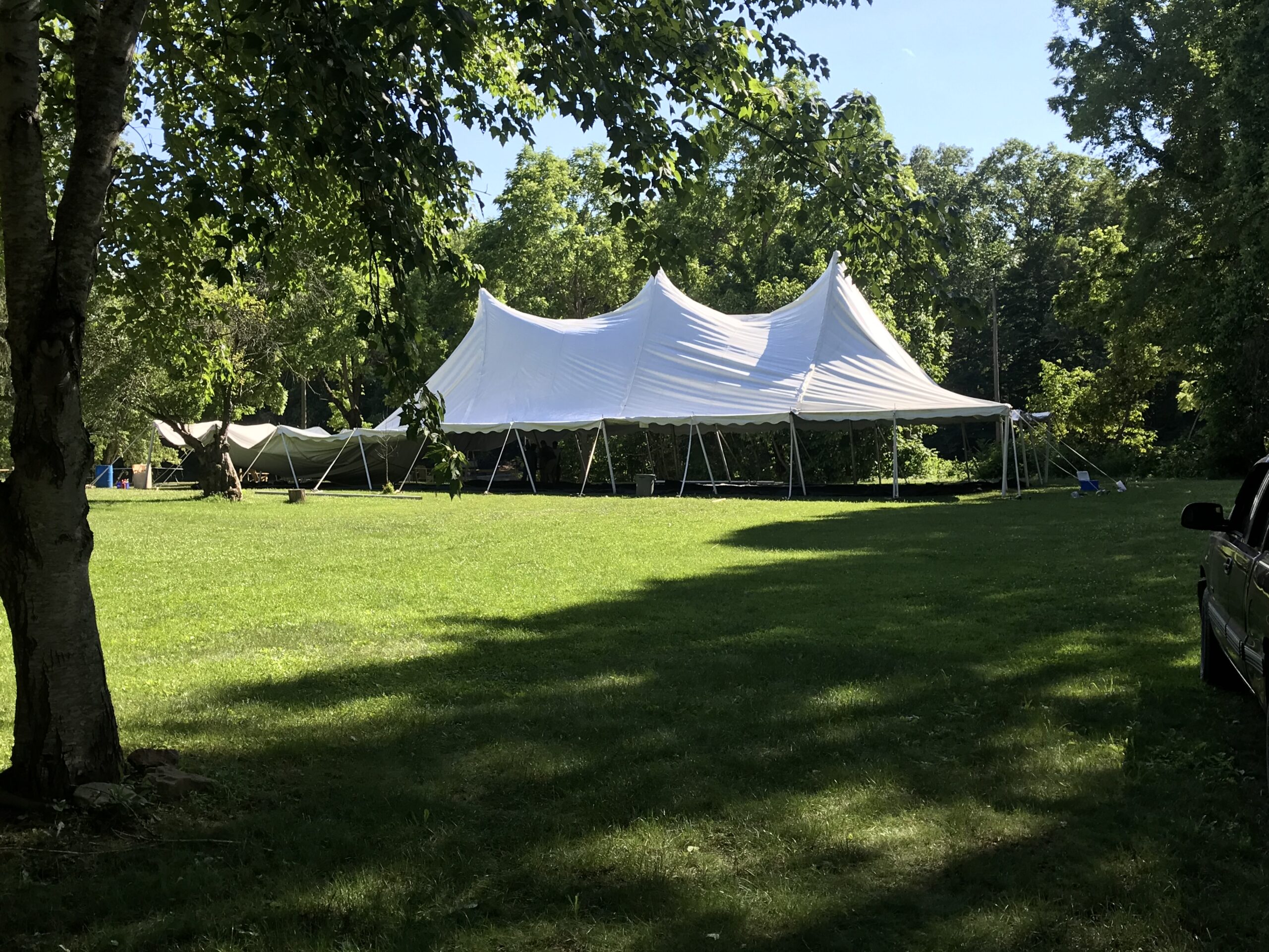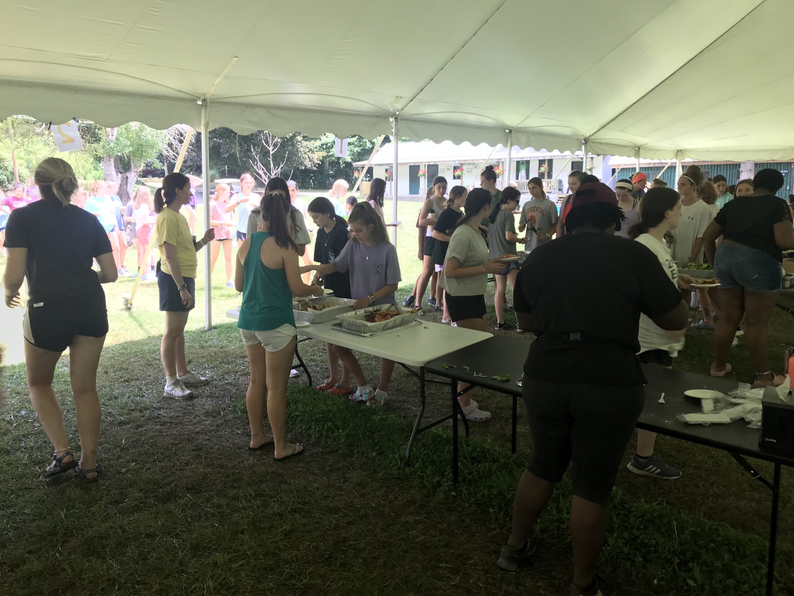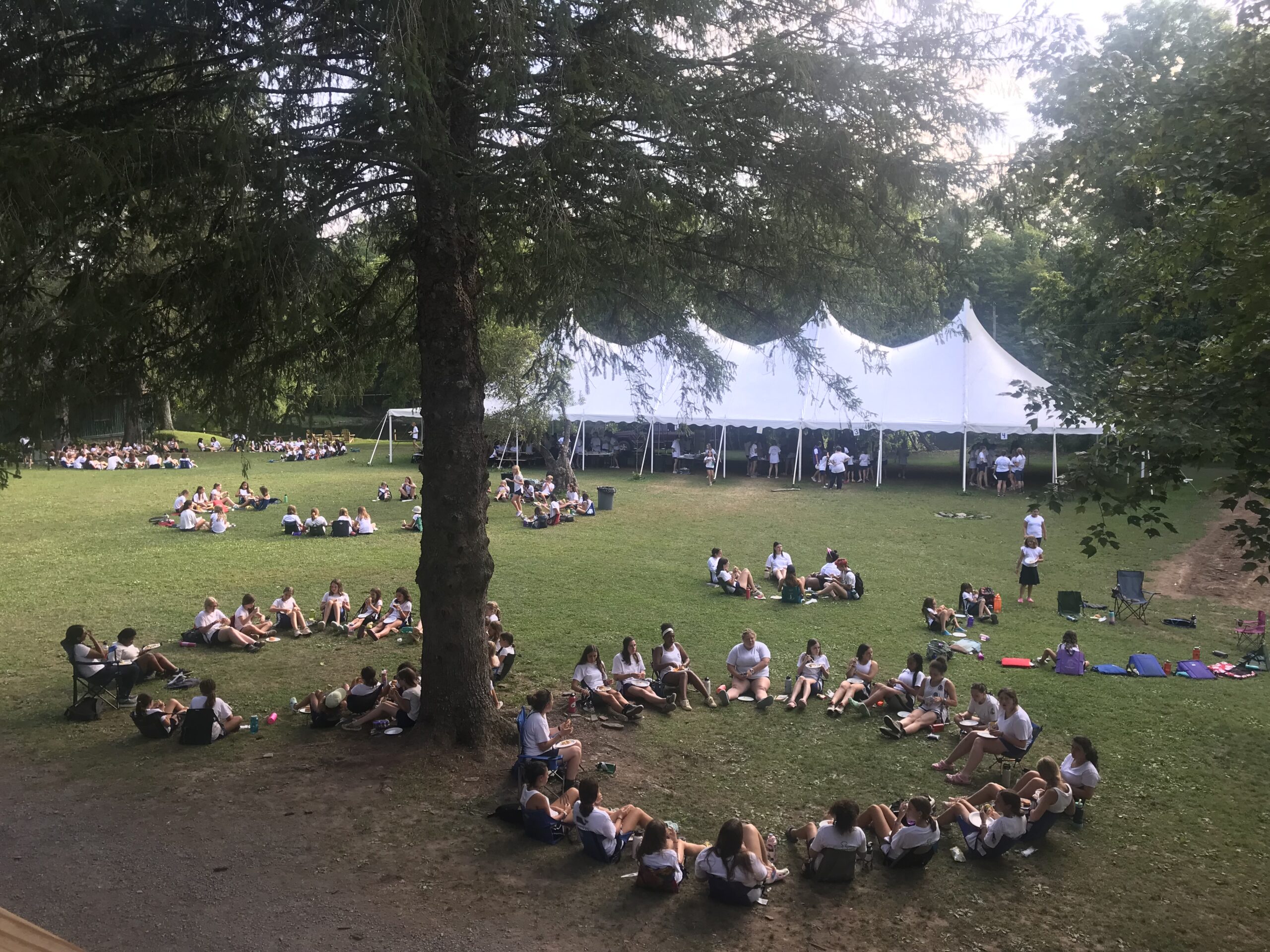 All of camp had all of our meals outside in their pods. For this particular summer we rented two event tents that were set up on some of our field space and we served our meals from under one of those tents and let the campers spread out outside. This wasn’t without one unfortunate consequence that I hope will not last beyond this past summer. It was how it affected Lunch Under the Apple Tree (LUTAT), as our weekly outdoor picnic is lovingly called.