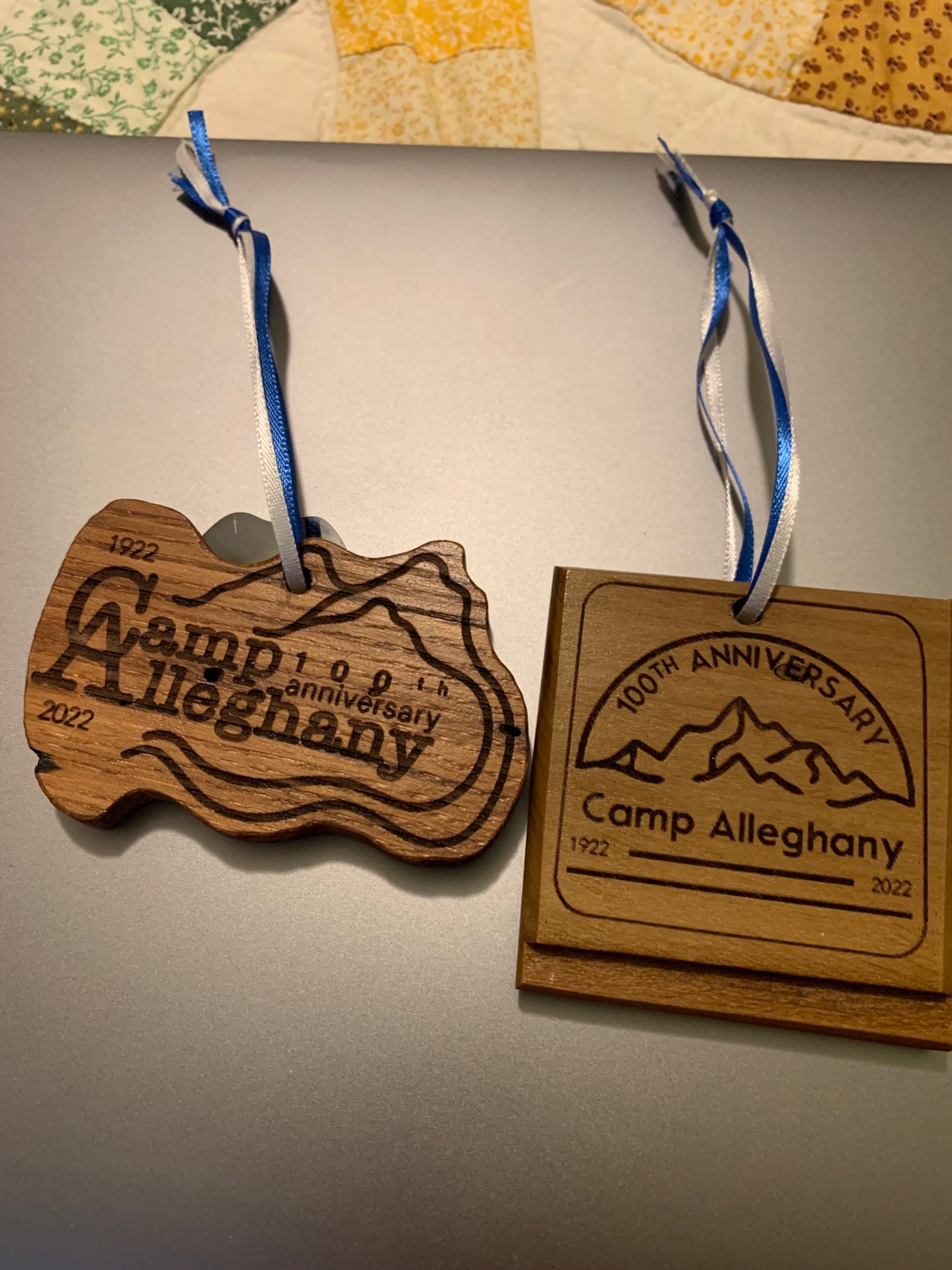 You’ll be able to adorn your tree this year with commemorative 100th Summer Christmas ornaments. In eco-friendly style, this super special keepsake is truly locally made, and handmade, using repurposed old tent hanging shelves. What a treasure!